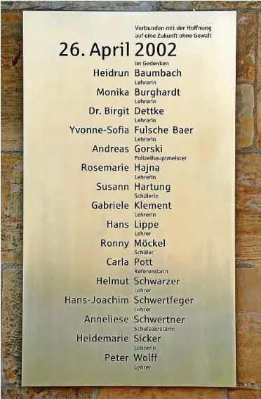 Für alle opfer dieser unglaublichen und unbegreiflichen tat die an diesem tag ihr leben lassen mussten! Danach war der massenmord nur. Sie stand ganz oben auf der liste des täters. Erinnerung an opfer des erfurter schulmassakers. Der amoklauf 2002 in erfurt schockte die gesamte nation.
